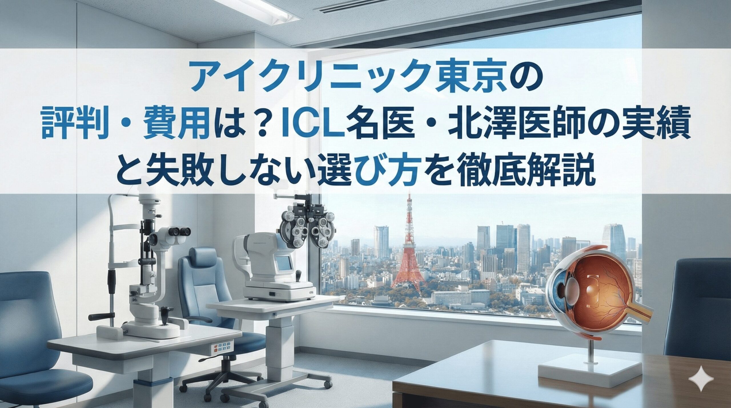 アイクリニック東京の評判・費用を徹底調査!ICL実績3.2万件超の北澤医師を指名できるメリットや「待ち時間が長い」口コミの真相とは?失敗したくない人へ、名医の実績と高度な衛生管理体制に基づく「後悔しない選び方」を解説します。 -
